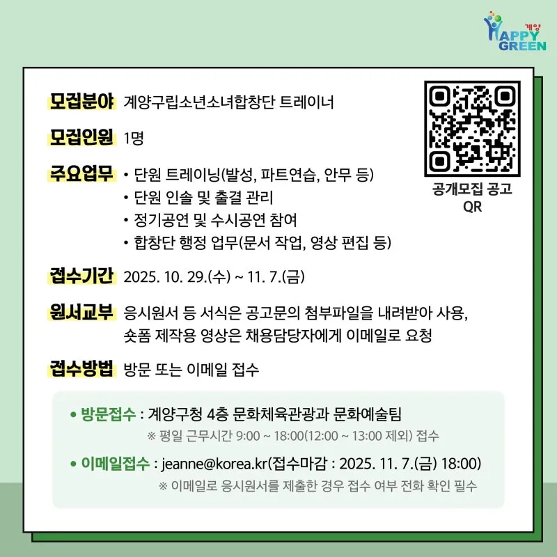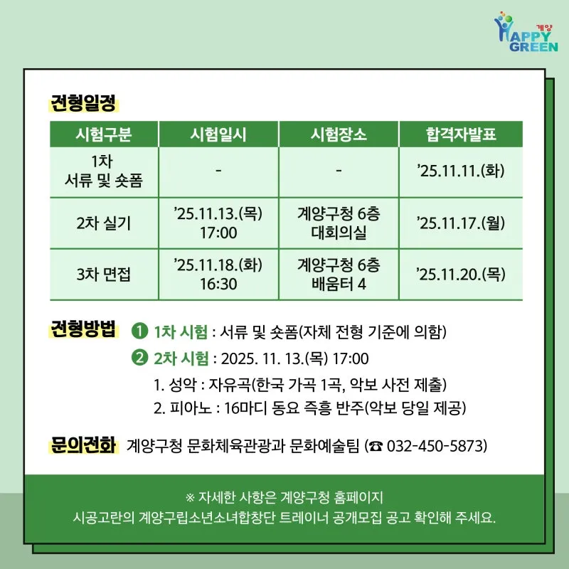 계양구립소년소녀합창단 트레이너 공개모집 안내