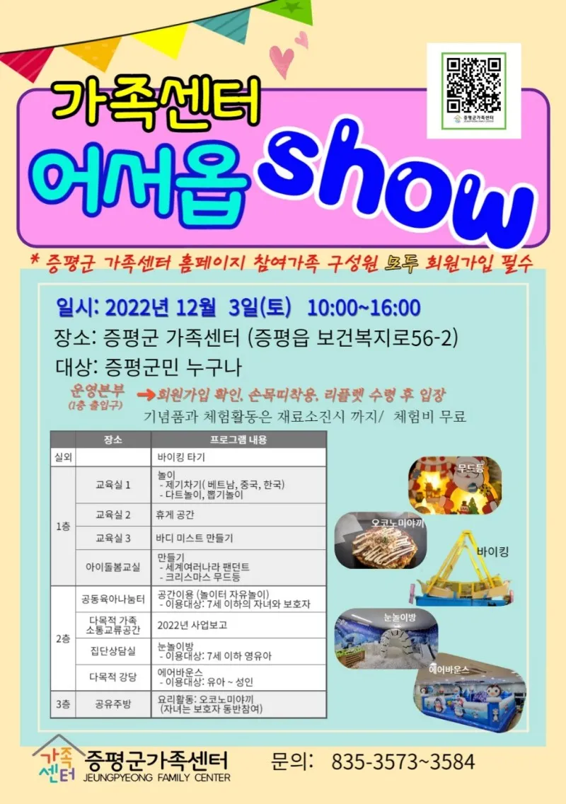 제가 방문한 날에는 가족센터 어서옵show 체험 행사가 진행되는 날이었습니다.