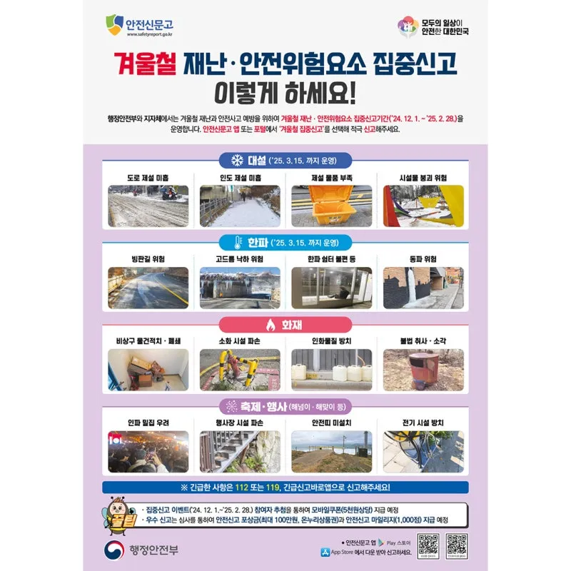 겨울철 재난·안전위험요소 집중신고기간