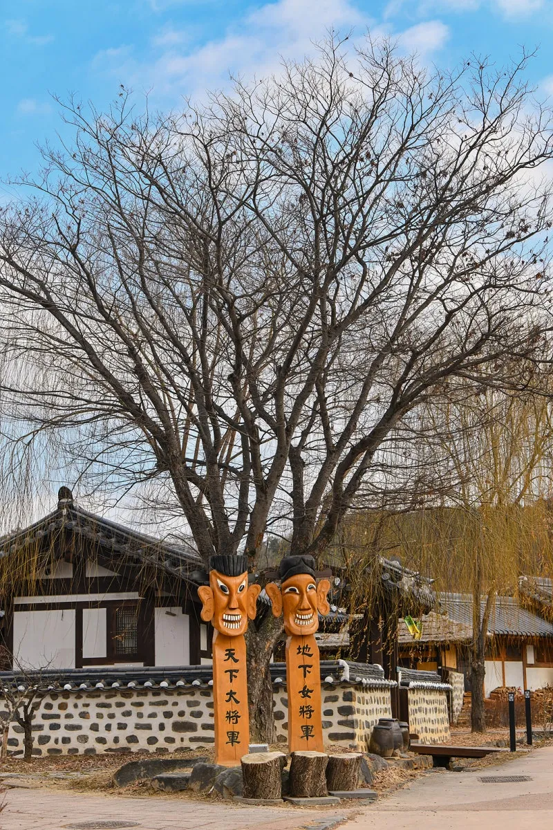 공주한옥마을 입구에는 천하대장군과 지하여장군 장승이 제일 먼저 반겨줍니다. 한옥마을은 우리의 것이라는 것이 새삼 느껴집니다.