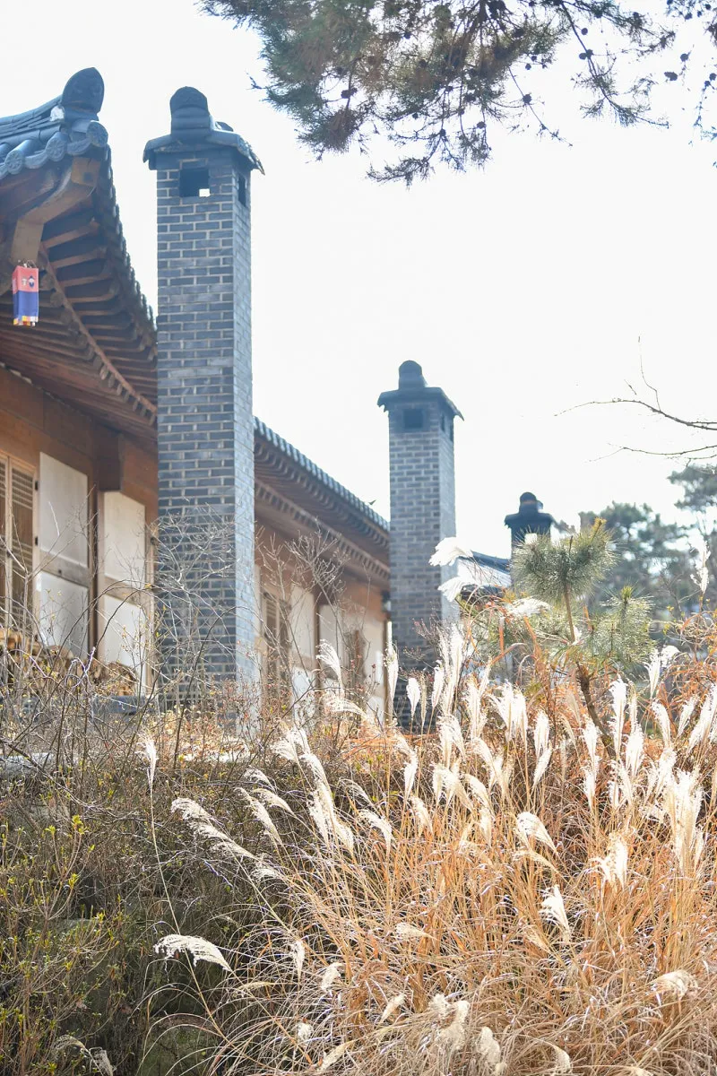 공주한옥마을 주차장에서 오른쪽으로 무료 족욕장이 있는데 바로 앞에는 겨울에도 억새가 보이니 가을느낌입니다. 가을과 겨울이 공존하는 공주한옥마을 바라만 봐도 예쁘네요