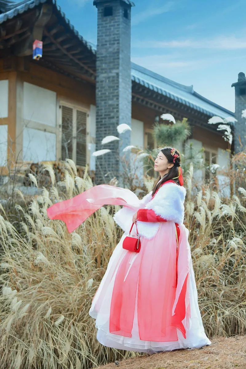 이렇게 예쁜 곳에서 인증사진을 안 담을 수 없겠지요. 바미한복에서 일부러 빨간색 레드 한복을 빌려 입고 바람이 부는 순간을 연출했습니다.
