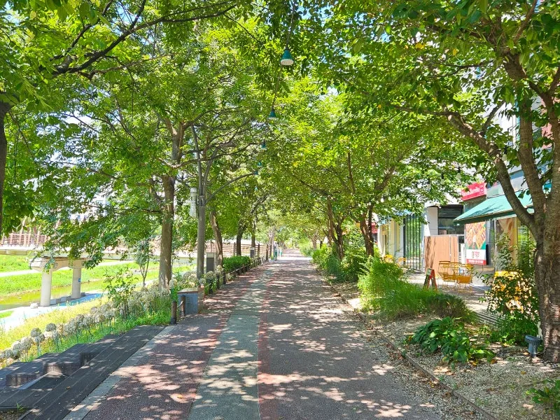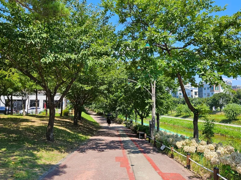 나무가 그늘을 만들어 주어서 시원하게 걸을 수 있어요.