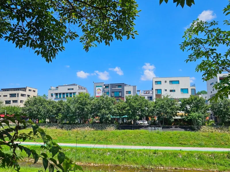 용암천 4교에 도착하니 하천 양옆으로 줄지어있는 카페 건물들이 보이기 시작하더라고요.