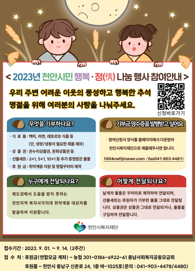 천안시복지재단, 추석명절 나눔캠페인 ‘천안시민 행복·정(情) 나눔’