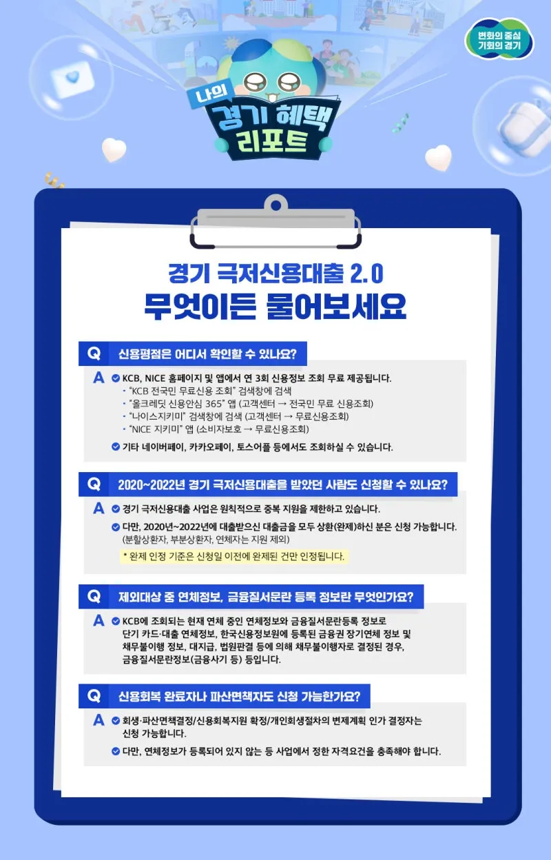 ‘경기 극저신용대출 2.0’을 시행합니다.