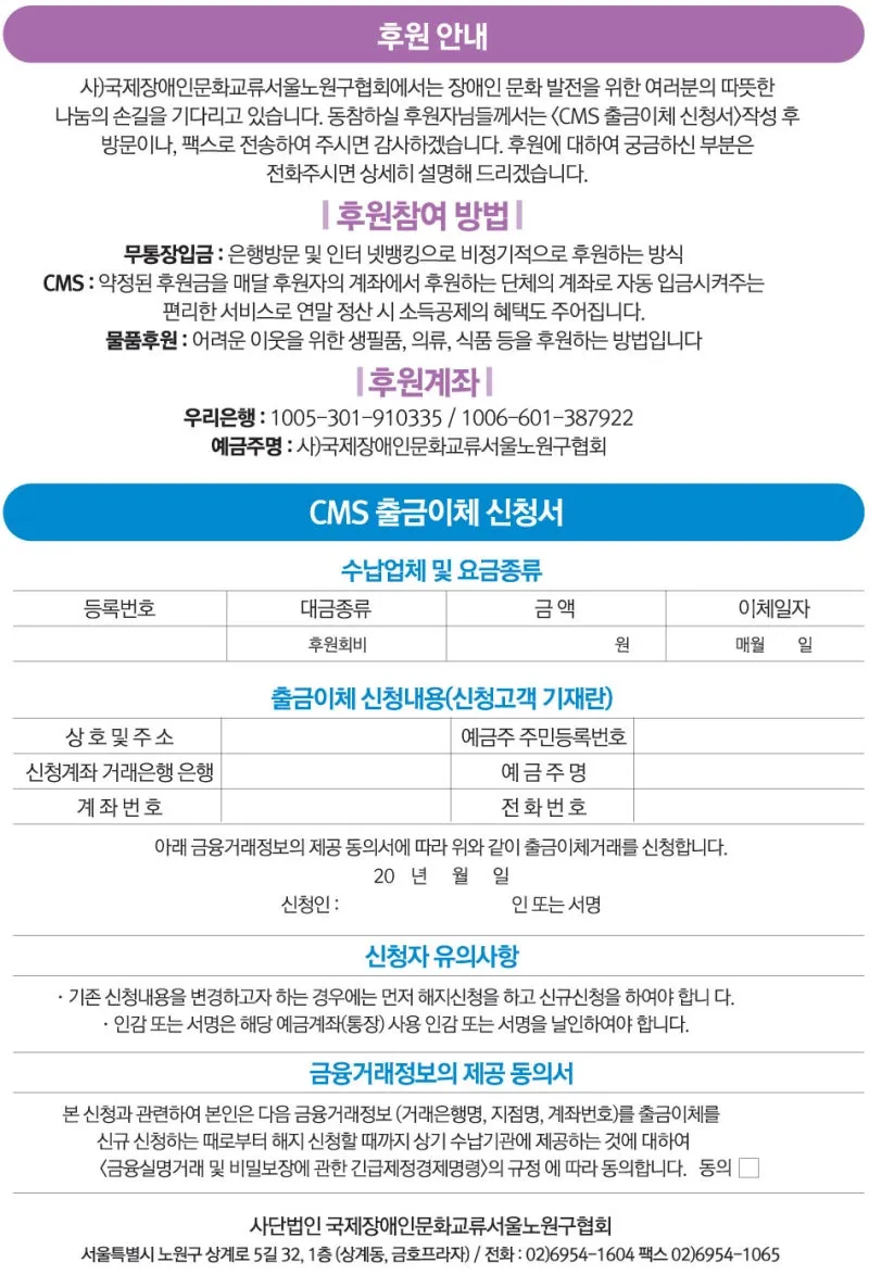 사단법인 국제장애인문화교류 서울노원구협회 ☎02-6954-1604