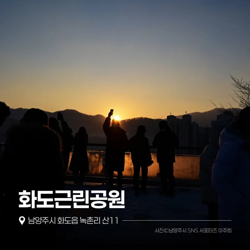 무장애 순환 산책로가 있어 산책 코스로 많은 분이 찾아주시는 화도근린공원 또한 남양주시 일출 명소입니다! 무장애 순환 산책로를 따라 오르다 보면 전망대에 도착하게 되는데요, 평소 화도근린공원을 방문하시는 분들이 새해가 되면 이곳에서 일출을 봐야지란 생각을 하신다고 해요. 그만큼 전망이 좋고 오르기도 쉬운 남양주시 일출 명소! 화도근린공원에서 2026년 새해 첫 일출을 만나보세요~