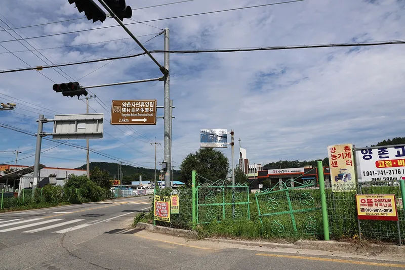 양촌자연휴양림의 산책로에는 논산에 여행할 만한 곳에 대한 소개가 있습니다.