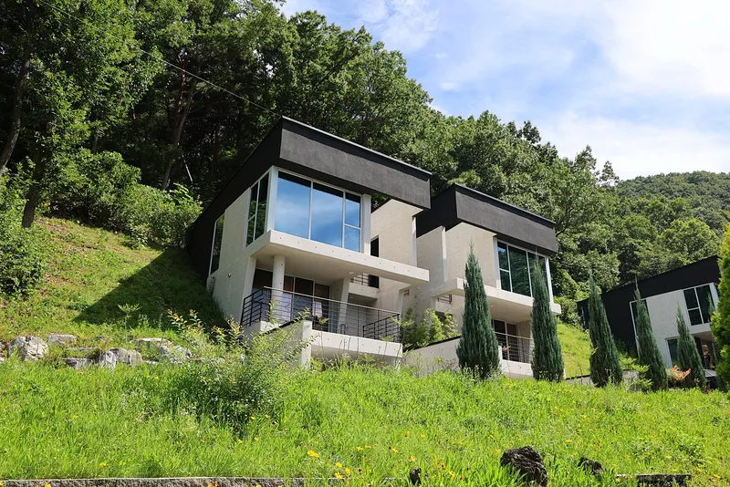 양촌자연휴양림의 안쪽으로 들어오니 현대식으로 지어진 숙박시설이 보입니다.