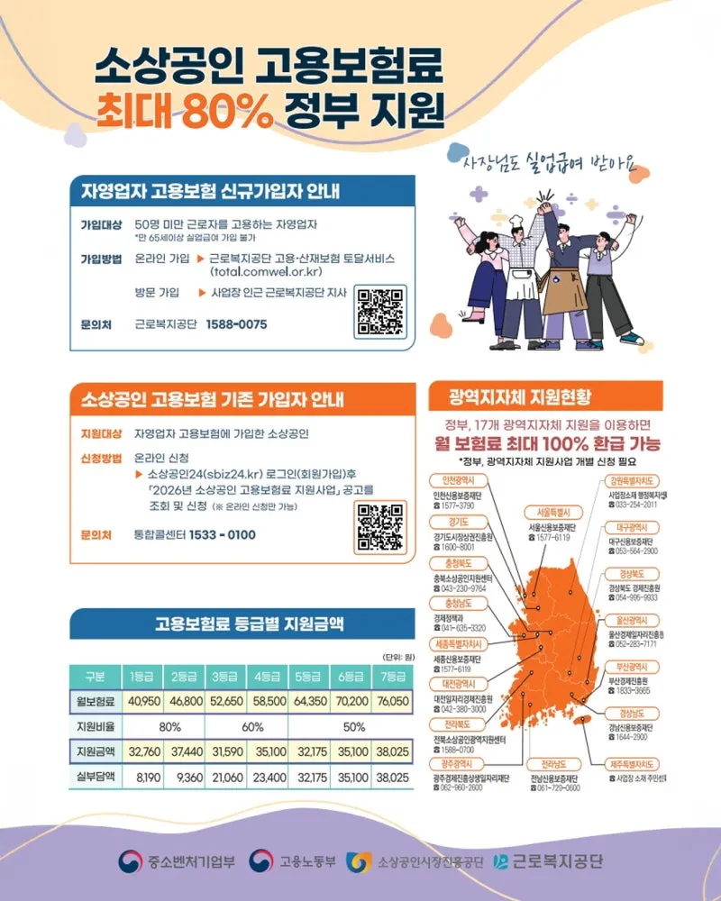[소식] 소상공인 고용보험료 최대 80% 정부 지원!