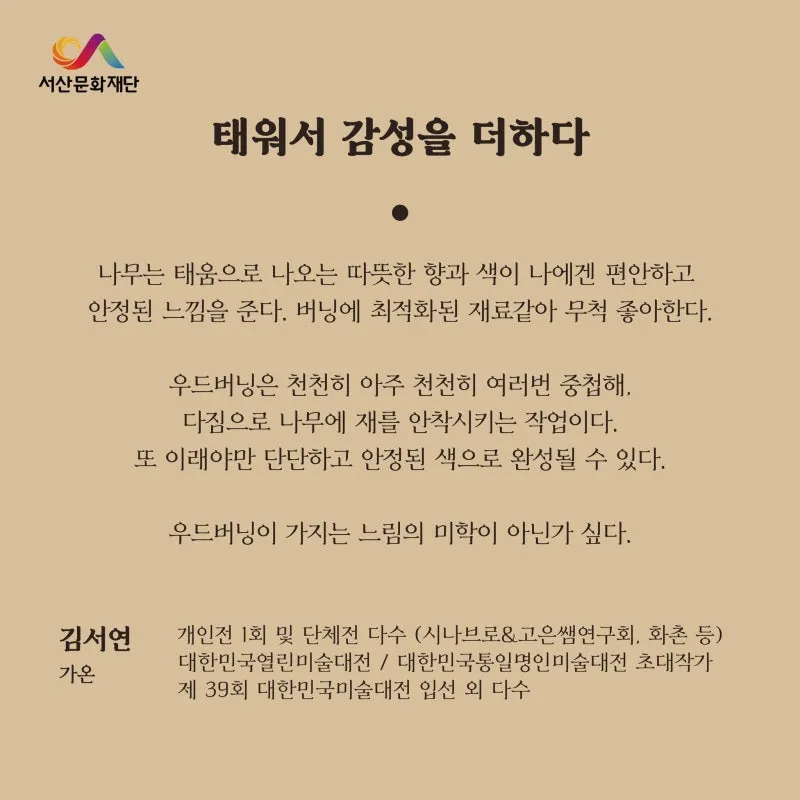 #서산문화재단 #서산생활문화센터 #전시프로그램 #서산전시 #우드버닝 #태워서감성을더하다 #김서연