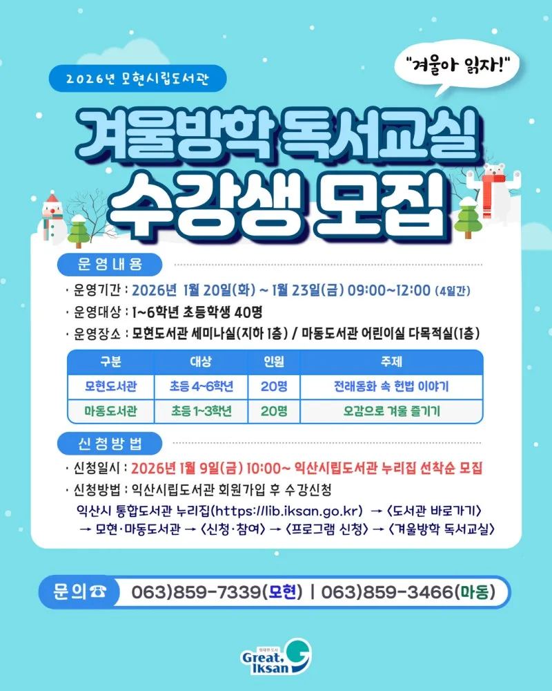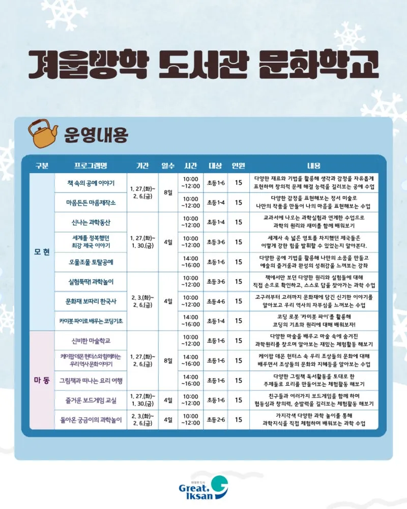 [✨ 2026 모현시립도서관 겨울방학 프로그램 안내 ✨]