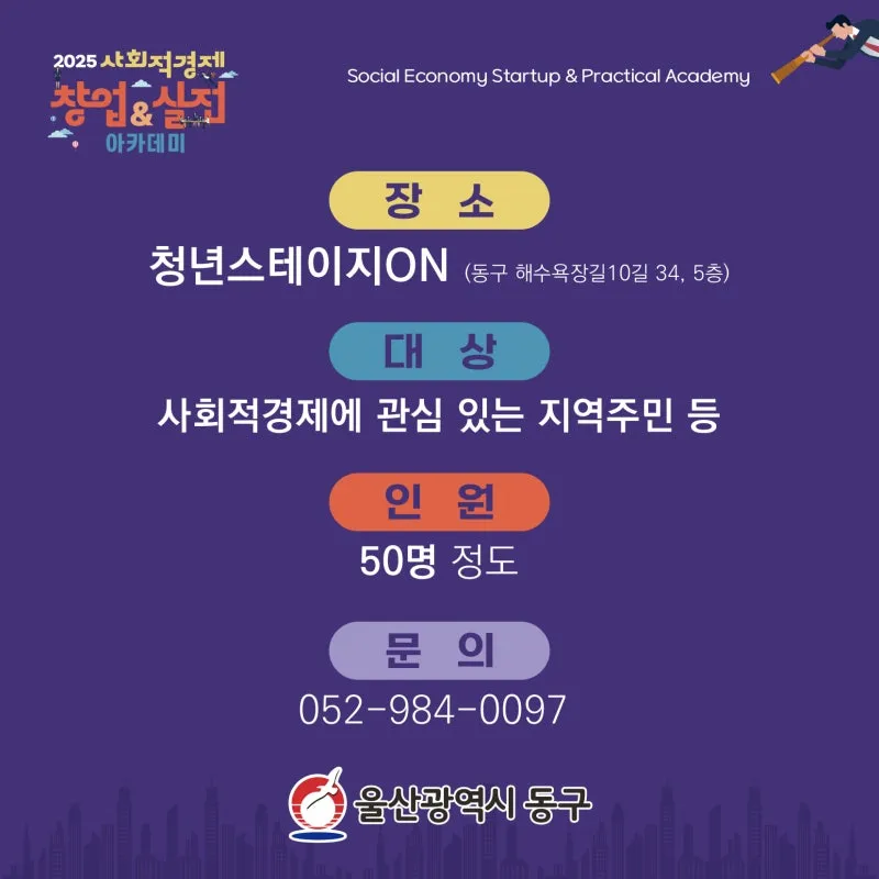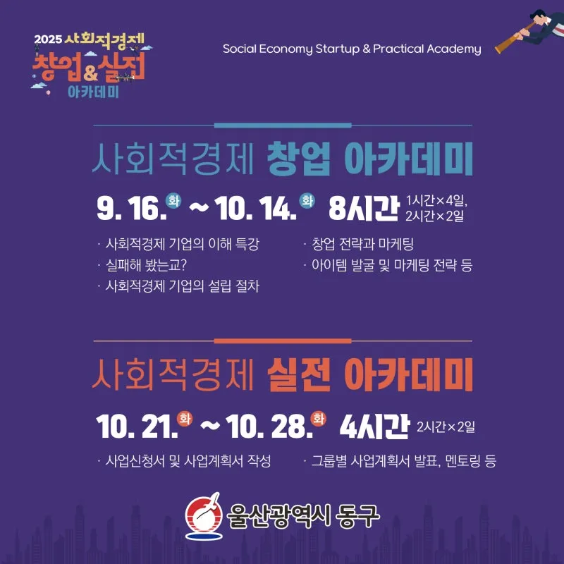 울산 동구, 2025 사회적경제 창업&실전 아카데미 교육생을 모집합니다.