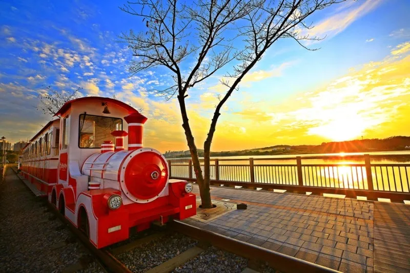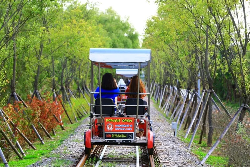 해가 지는 시간대에 맞춰 레일바이크를 타면