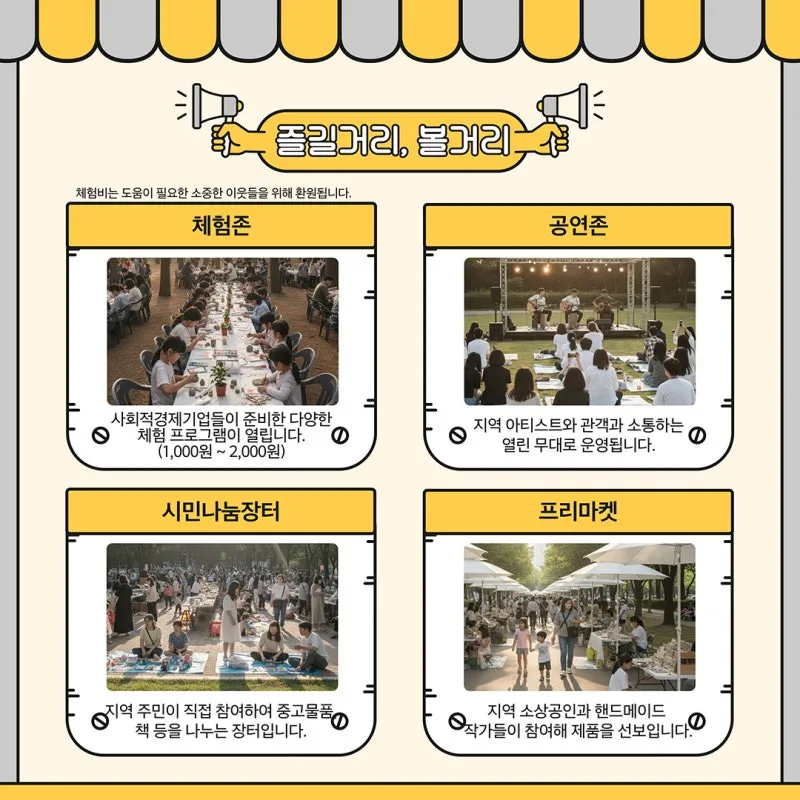 ◆ 주요내용 : 체험존 / 공연존 / 시민나눔장터 / 프리마켓