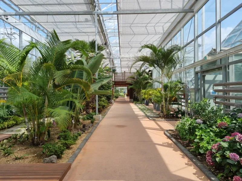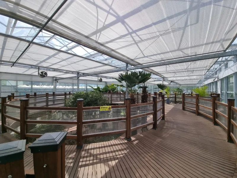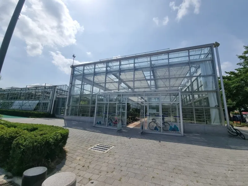 넓게 펼쳐진 온실에서는