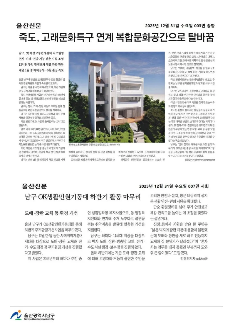 {"title":"[행복남구 오늘의신문] 죽도, 고래문화특구 연계 복합문화공간으로 탈바꿈 (12월 31일 수요일)","source":"https://blog.naver.com/ulsan-namgu/224128796739","blogName":"울산광역시..","domainIdOrBlogId":"ulsan-namgu","nicknameOrBlogId":"울산광역시남구청","logNo":224128796739,"smartEditorVersion":4,"blogDisplay":false,"cafeDisplay":false,"meDisplay":true,"outsideDisplay":false,"lineDisplay":true}