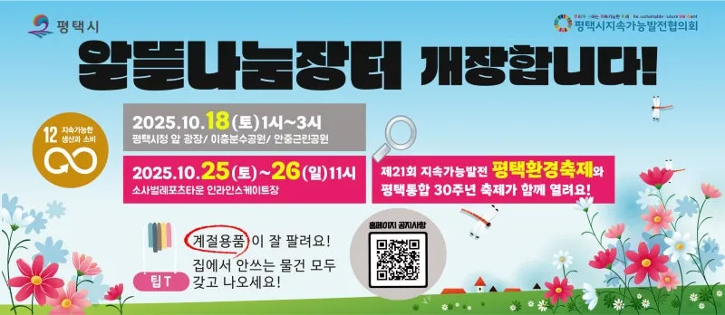 🌳 10/25~26일의 알뜰 나눔장터는 제21회 지속가능발전 평택환경축제 그리고 🎉 평택통합 30주년 기념 축제와 함께 열립니다!