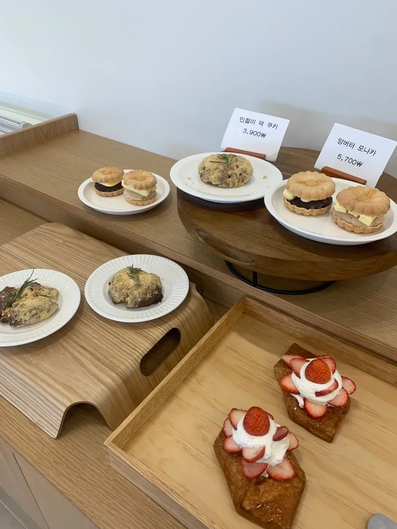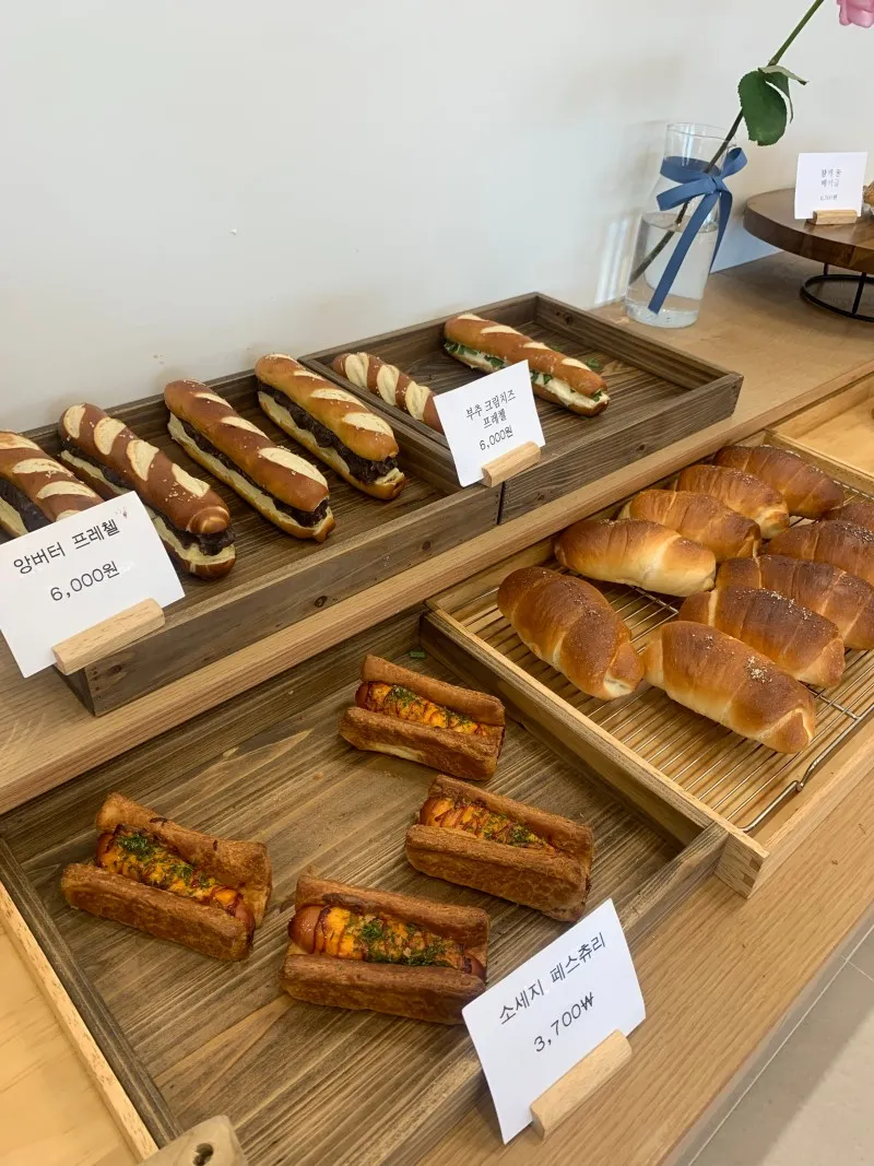 남녀노소 불문하고 모두가 좋아할 빵들이 진열대에 있네요.