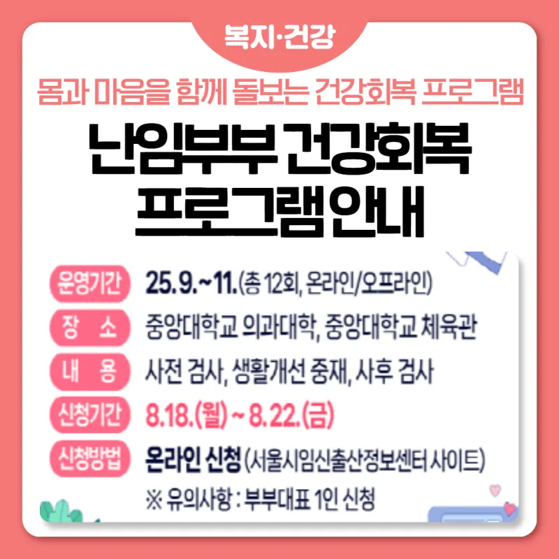 중앙대학교와 함께하는 난임부부 건강회복 프로그램 안내