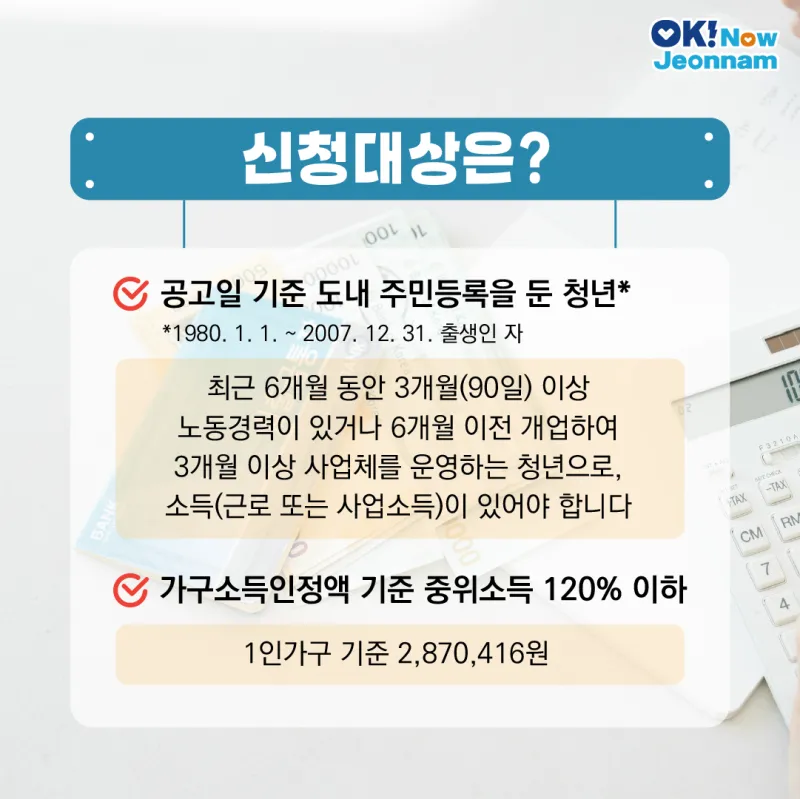 📍 공고일 기준 도내 주민등록을 둔 청년*