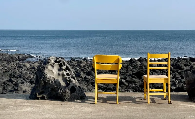걷다 보면 가만히 앉아 바다를 감상하며 여유를 즐길 수 있게끔 귀여운 의자도 마련되어 있는데요. 이곳에서 사진을 찍으면 드넓은 바다, 제주의 돌담과 함께 멋진 인생샷을 남길 수 있으니 놓치지 마세요 ꈍ◡ꈍ