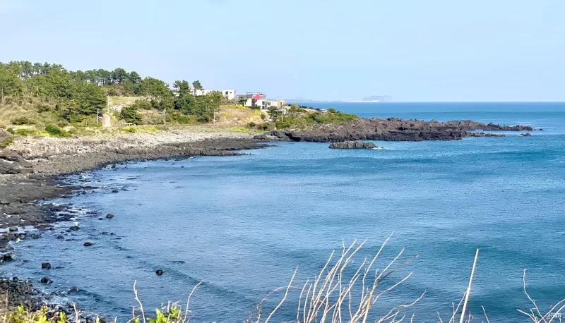 해안길을 따라 대평포구를 향해 걷다 보면 감탄을 자아내는 수려한 풍경, 해안 절벽 '박수 기정'과 '산방산'을 함께 조망할 수 있어요.