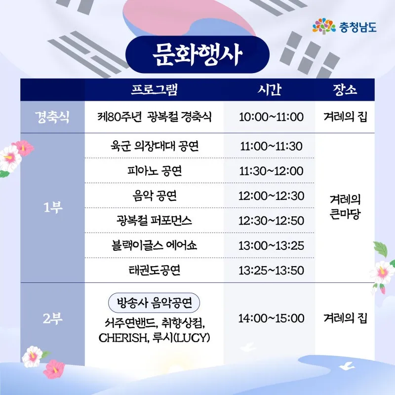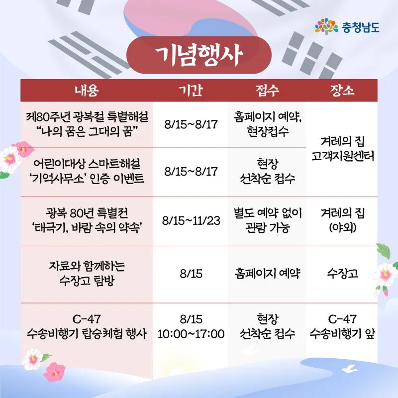[광복절] 충남에서 함께하는 '광복 80주년'