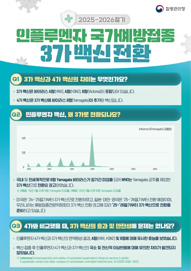 2025-2026 절기에는 3가 백신으로 전환된다고 합니다!