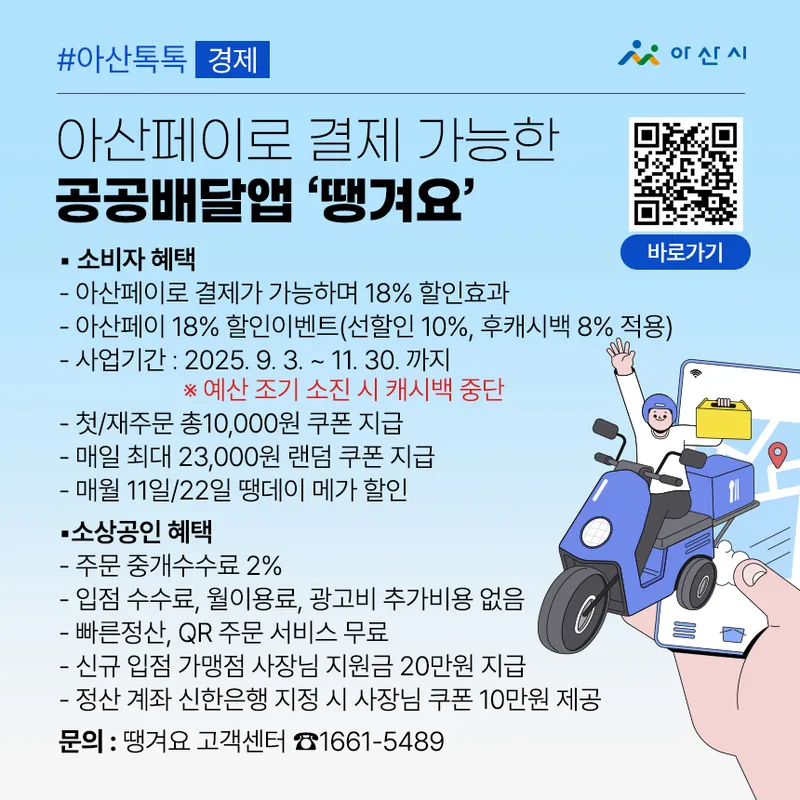 📱 아산페이로 결제 가능한 공공배달앱 ‘땡겨요’