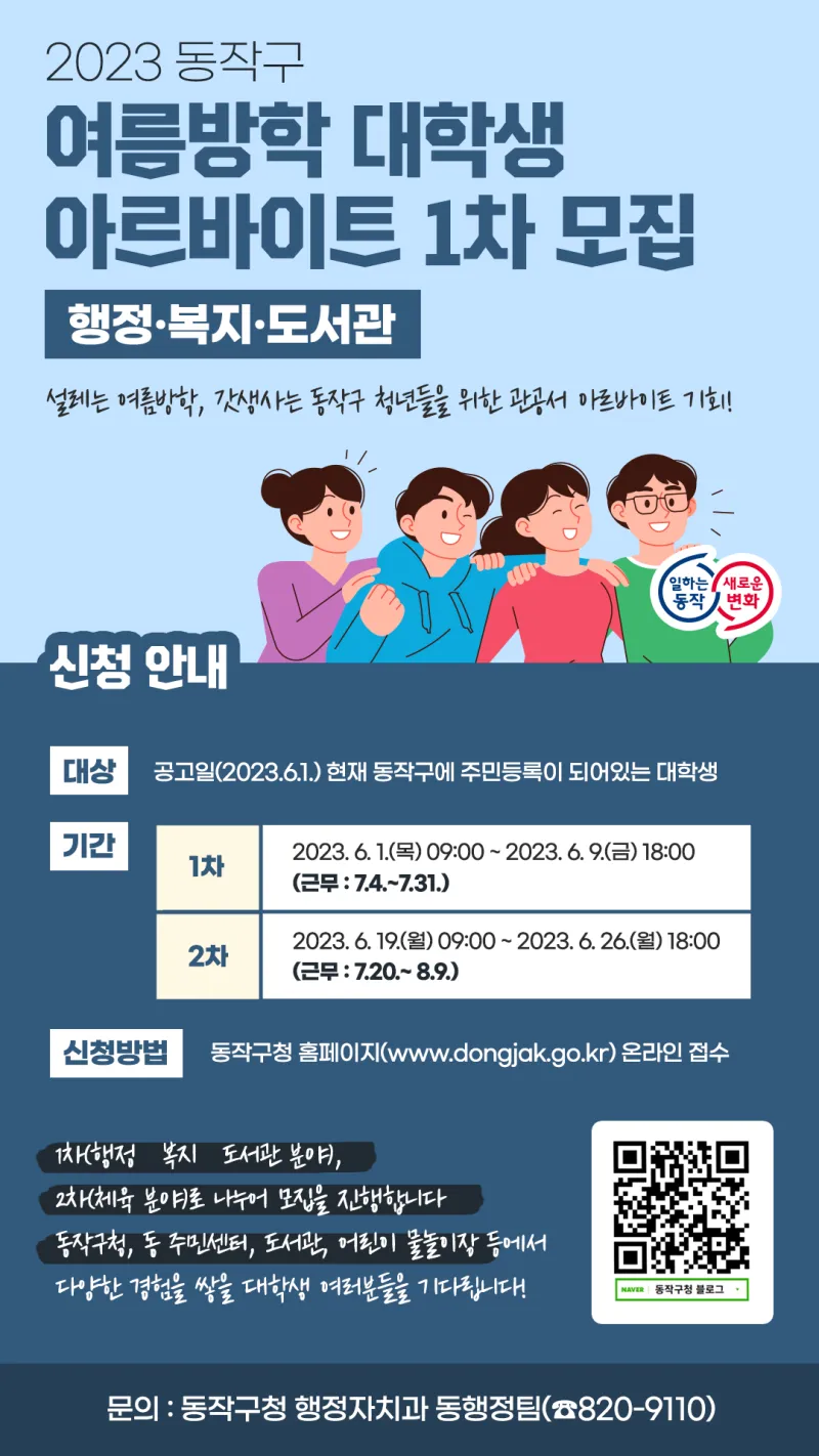 2023 여름방학 대학생 아르바이트 모집 안내 (1차/2차)