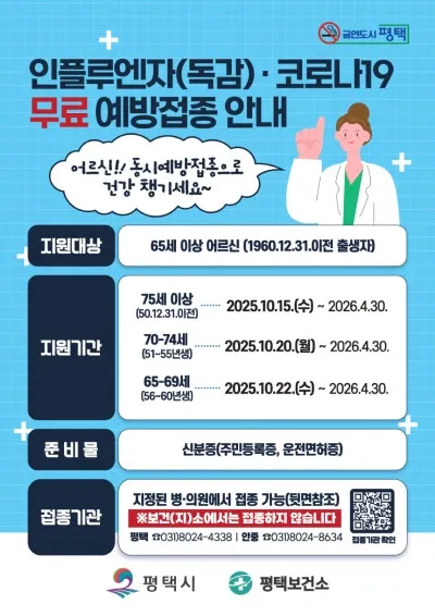 ✅ 인플루엔자(독감) · 코로나19 무료 예방접종 안내