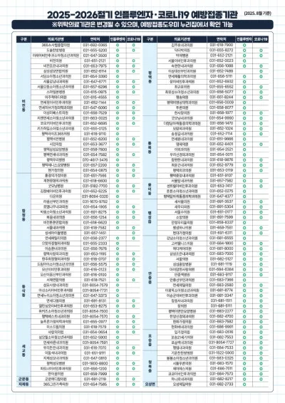 ▼ 2025-2026절기 인플루엔자·코로나19 예방접종기관 확인하기 ▼