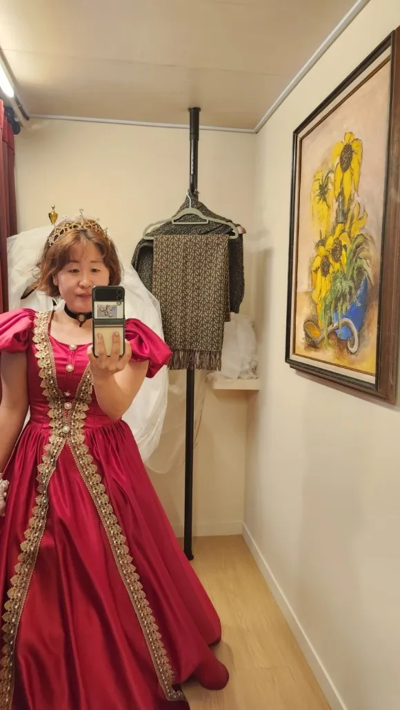 렌탈샵에는 다양한 의상과 액세서리가 가득했습니다. 마음에 드는 의상을 고른 뒤 의상에 맞게 액세서리까지 코디하고 나니 완벽한 변신이 가능했습니다.