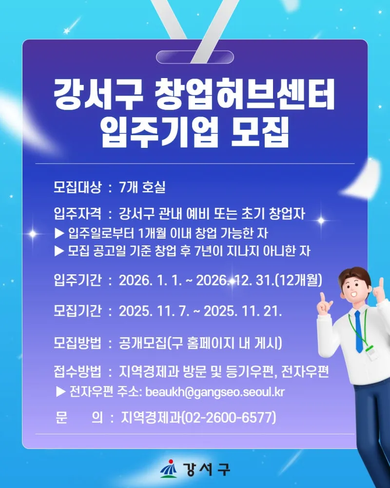 ???? 강서구 창업허브센터에서 열정 있는 예비·초기 창업자를 찾습니다.