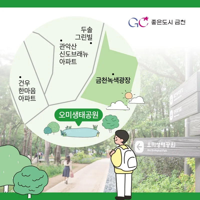 오미생태공원과 금천녹색광장 사잇길에