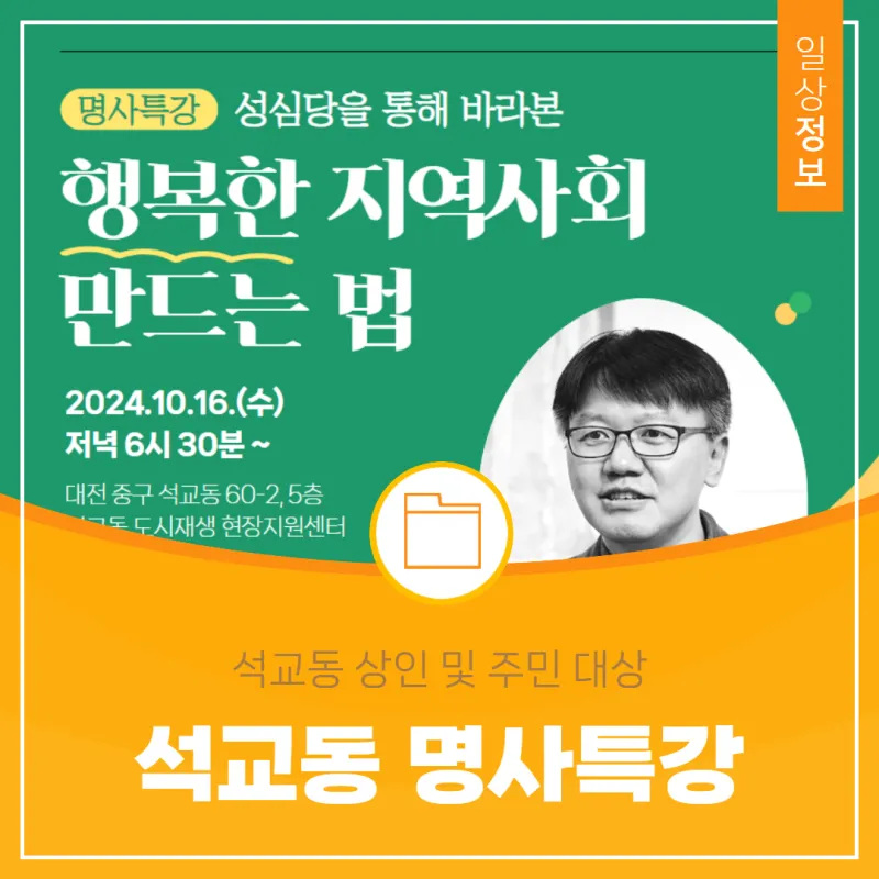 석교동 상인 및 주민분들 주목! 명사특강이 왔습니다!