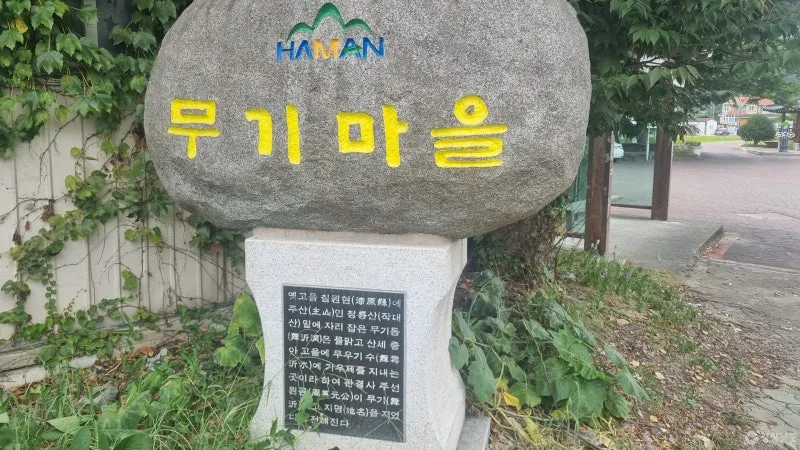 무기마을은 칠원현에 주산인 청룡산 밑에 자리 잡은 무기동은 물 맑고 신세 좋아 고을에 무우기 수에 기우제를 지내는 곳이라 하여 판결사 주선 원공이 무기라고 지명을 지었다고 전해집니다.