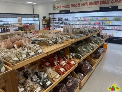 품목은 정말 다양하게 있었어요. 제가 방문한 날은 정월대보름을 앞둔 시기 어서 그런지 다양한 종류의 잡곡이 있고, 참기름 등 다양한 품목들이 많았어요.