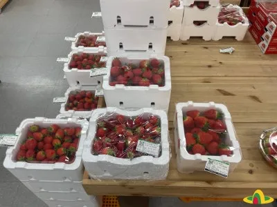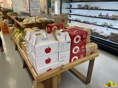 각 위에 마다 건나물, 구근류, 가공식품 이렇게 구분이 되어 표시가 되어있으니 필요하신 분들은 구매하러 오신 품목을 찾아서 구매하시면 좋을 거 같아요. 의성에서 생산되는 사과, 대추, 딸기가 한창 수확하는 시기라 딸기가 정말 많았어요.