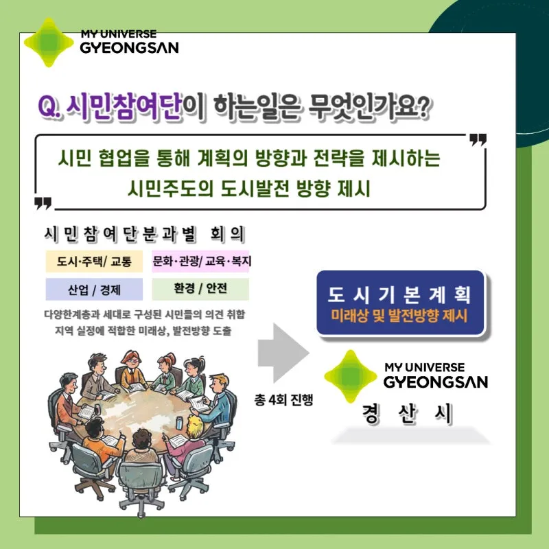 - 활동내용 : 경산 도시기본계획의 분야별 미래비전과 아이디어 발굴