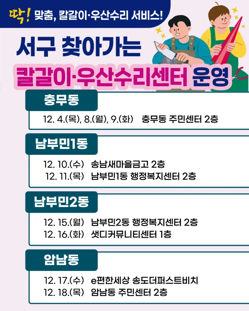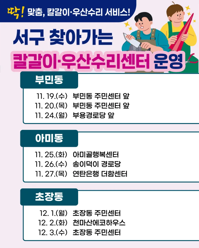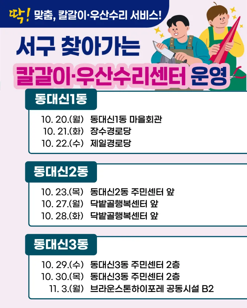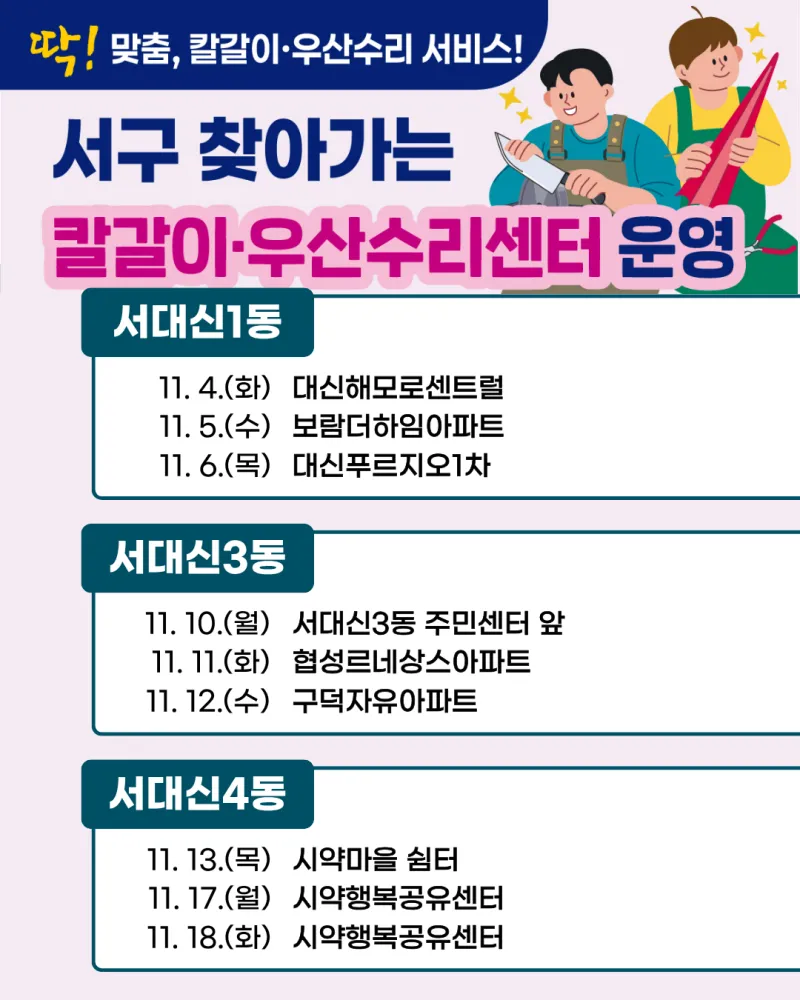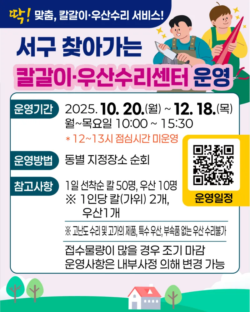 🔪서구 찾아가는 무료 칼갈이·우산수리센터 운영 🌂