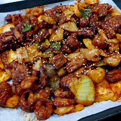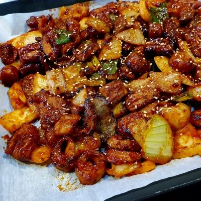 매콤달콤한 매운맛과 고소하고 달달한 맛이 어우러진 맛! 한 번 나쁘면 헤어나올 수 없습니다.