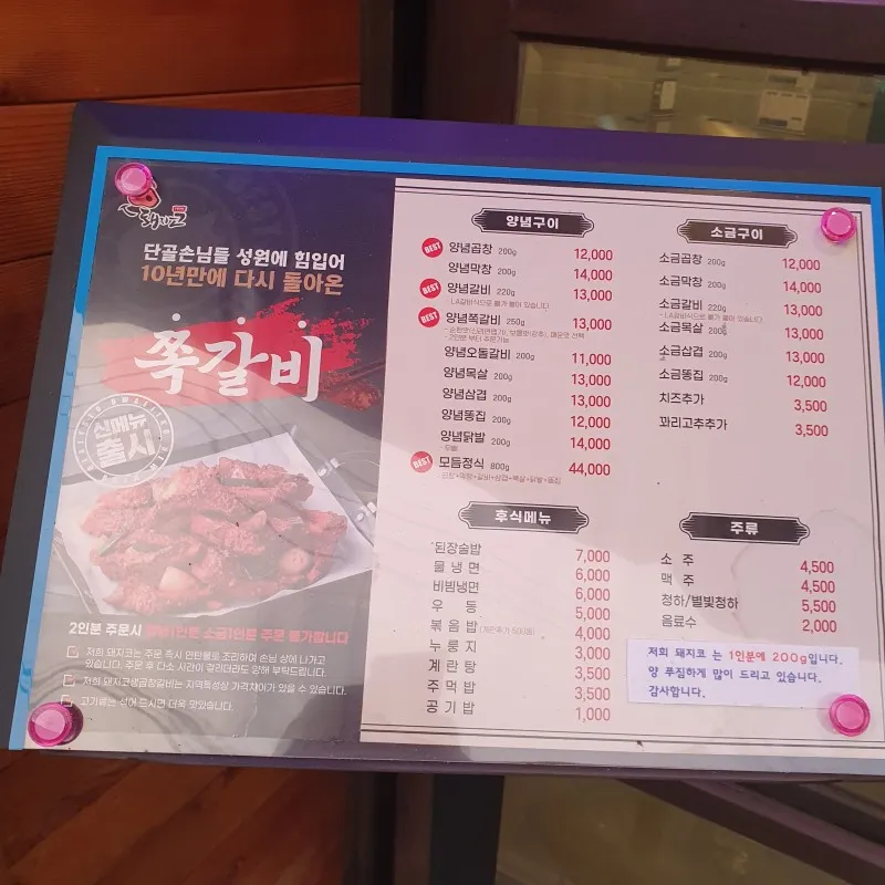곱창을 못 드시는 분들도 충분히 먹을 수 있는 삼겹살과 갈비 그리고 쪽갈비도 준비되어 있으니
