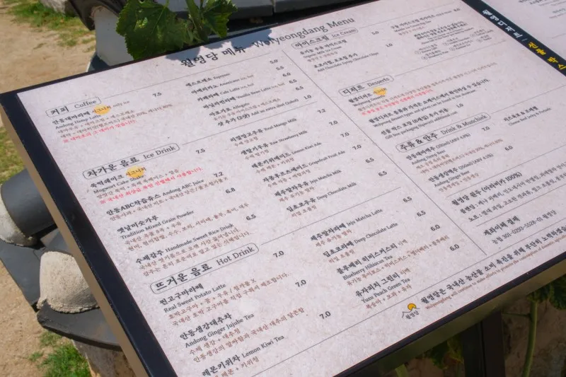 입구에 메뉴판이 있어
