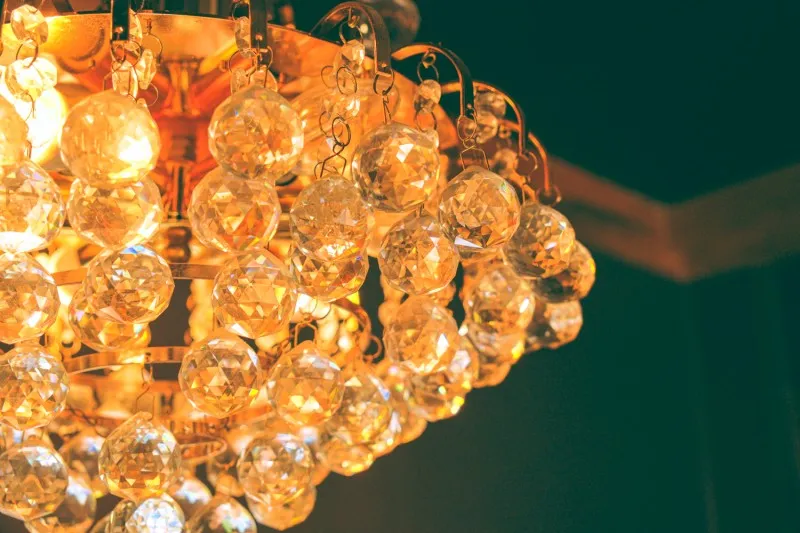 샹들리에가 있고 노란색의 조명이