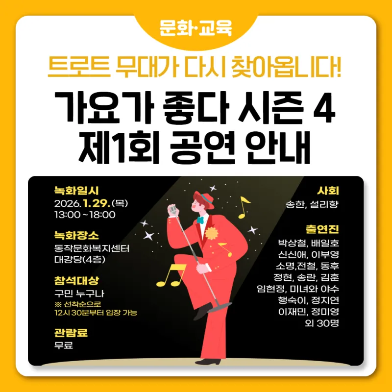 🎤트로트의 매력을 좋아하시는 동작구민 여러분께 반가운 공연 소식 전해드립니다!