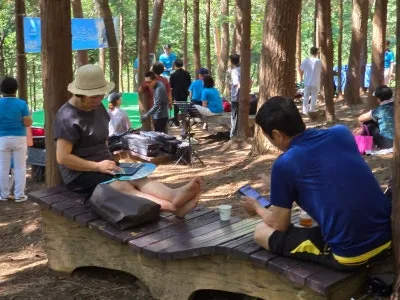 군산 월명공원 편백나무숲 힐링과 치유의 토요상설무대