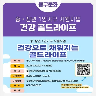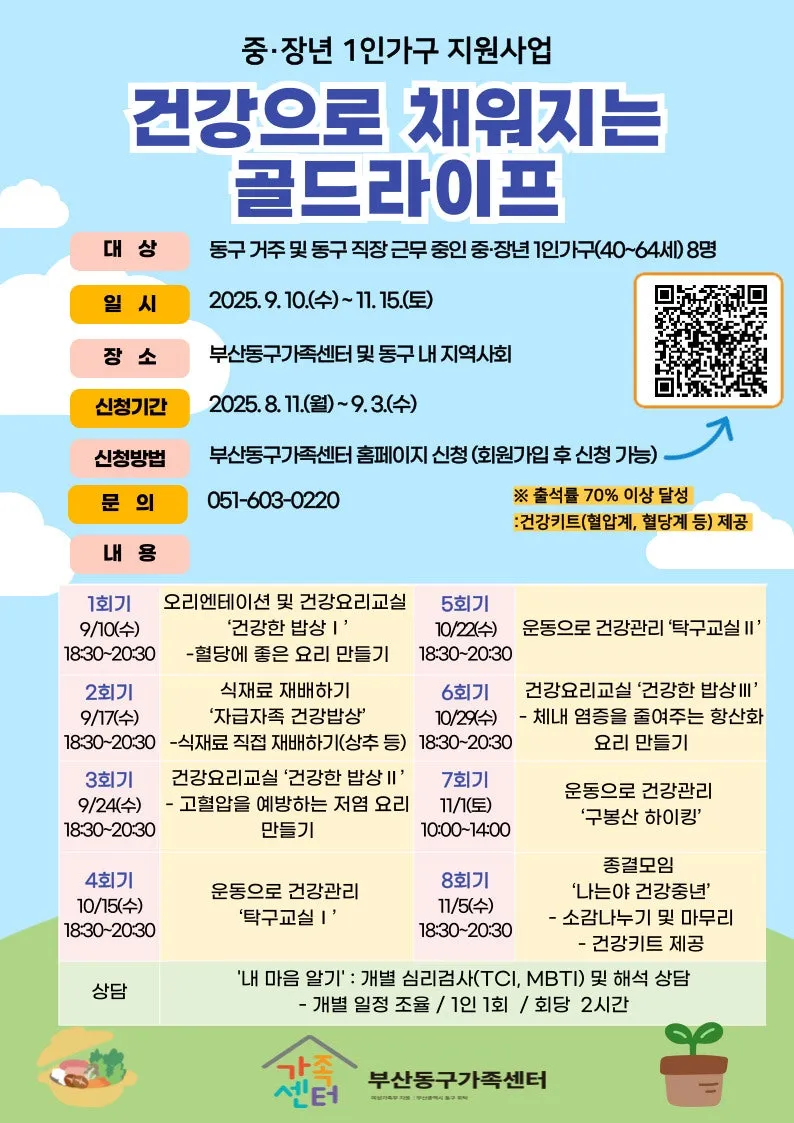 ✅ 참여대상 : 동구 거주 및 동구 직장 근무중인 중·장년 1인가구(40~64세) 8명
